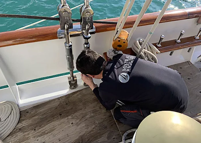 Evaluación técnica del sistema de jarcia para detectar desgaste, fallos potenciales y puntos críticos antes de navegación.